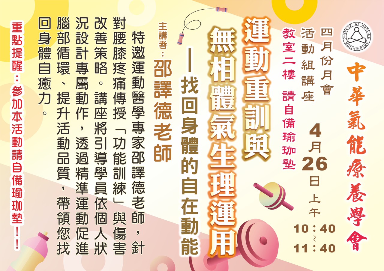 - 115/4/26(日)四月份月會:運動重訓與無相體氣生理運用